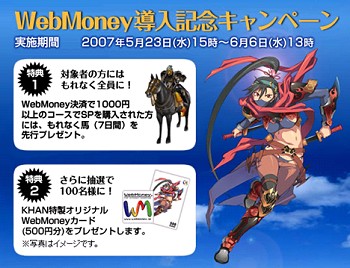 株式会社シェアーズ(本社:東京都文京区、代表取締役社長:山〓※ 裕)は、2007年5月23日(水)より、MMORPG『The Absolute Power〜KHAN〜』(以下『KHAN』)にてWebMoney導入記念キャンペーンを実施致します。