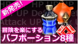 能力をアップさせるポーションを新発売!! 各能力を一時的にアップできるポーションを新たに販売します。 新たに販売するポーションは、「コンセントレーションポーション(LV3)」、「ラフレックポーション(LV3)」、「バイタルポーション(LV3)」、「シャープネスポーション(LV3)」、「マナコンデンスポーション(LV3)」、「バイタルリジェネーションポーション(LV3)」、「ハードネスポーション(LV3)」、「ストライクポーション(LV3)」の8種類となっており、ダンジョンなどの難易度の高い場所に挑むときに大いに役に立つでしょう。 こちらは10個セットで、10%の割引価格での販売も行います。 また、先日まで販売していたSPを回復するフューリーポーション(中)を、皆様の要望にお答えして期間限定で再販売します。 便利なアイテムが増えたことでますます高難易度なダンジョンに挑みやすくなるでしょう。