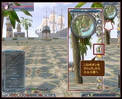 また,ゲーム内の「エルス港」がリニューアルされたことも,プレイヤーにとっては見逃せないアップデート内容といえる。具体的には,エルス港の一部が埋め立てられて,さまざまなショップが建ち並ぶ広場に変更されたのだ。 この広場には,画面の右側に表示されているボタン(上の画像を参照のこと)をクリックするだけで,誰でも一瞬で移動できる。アイテム売買の拠点として,またはちょっとした憩いの場として,ぜひ積極的に活用したいところだ。