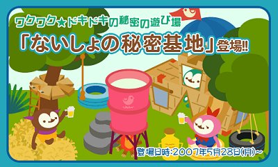 [URL]■=============================■ 株式会社ジークレスト(本社:東京都渋谷区、代表取締役社長:長沢潔)と、共同運営を行っている株式会社ジーウェブ(本社:東京都渋谷区、代表取締役:白井好美)は、マペットオンラインコミュニケーションゲーム『Barvillage(バルビレッジ)』において2007年5月28日(月)15時から新カプセルマシーンアイテム「ないしょの秘密基地」の発売を開始いたしました。