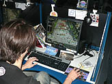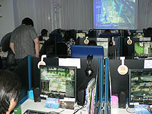 機材トラブルによって時間が押していたため,賞品の分配が終わったのは,コロニー戦が開催される9:00PM間近のこと。結果,党員達は用意された軽食を食べながら,他党と交戦することになってしまった。 しかし,最初こそどこか浮ついた雰囲気が漂っていたものの,党首TKYさんの指示のもと,時間が経つにつれて党員の集中力は高まっていき,会場はマウスのクリック音とキーボードを叩く音のみに支配されていった。結局,当日のコロニー戦では,普段と異なるスペックのPCなどをはじめ,多くの党員が慣れない環境でプレイしたためか思わしい結果が得られなかったが,TKYさん以下,党全体の統制の取れた動きに,さすが最優秀党を獲得するだけのことはあると,筆者は感心させられた次第。 11:00PMのコロニー戦終了をもって,党大会も幕を閉じた。片付けをして会場から出た後は,党員有志により,二次会が行われたそうだ。