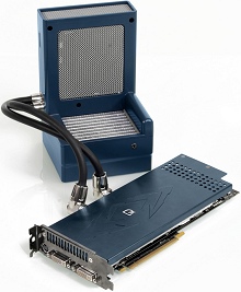 インターフェイスは、 デュアル Dual-Link DVI、HDTV出力機能搭載モデルで、最大解像度は アナログ時 2,048×1,536 、DVIデジタル時 2,560×1,600、HDTV出力 1080pとなっており、HDCP(High-bandwidth Digital Content protection)、NVIDIA SLITM (Scalable Link Interface)にも対応、ハードウェアモニタ機能も装備しております。 水冷クーリングシステムを採用したことにより、オーバークロック設定であるにもかかわらずスタンダードモデル(ファンモデル)との比較では、スタンバイ時で約24%の発熱を抑えるとこができました。 標準装備として、「専用HDTV出力ケーブル」と、「DVI→D-Sub(15ピン)変換コネクタ」を添付しておりますので、HDTV出力や、NVIDIA社nViewTMディスプレイテクノロジーもすぐにお楽しみいただくことができます。