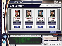 また,有力な選手は,ポスティングと呼ばれるオークションで入手することも可能だ。ポスティングの機会は,1回のペナントにつき1度だけ。ゲーム中に期日がくると,能力の高い選手が数人掲示されるので,プレイヤーは好きな選手を選び,ポイントを使って自由に入札する。ポスティング期間終了時に,最も高いポイントで入札していたプレイヤーが,その選手を獲得できるという仕組みだ。 どの程度のポイントで入札するかは,自分自身やほかのプレイヤーの現有戦力,そして懐具合などを考慮する必要があるので,なかなか悩ましい。ちなみに筆者もポスティングに参加してみたが,わずかな差で広島の黒田選手を獲り逃してしまい,かなり悔しい思いをした。