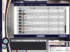ファン球団別チーム成績順位表。成績が上位の球団のファンは,ボーナスがもらえる