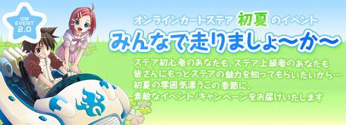 オンラインゲームの開発・運営を行う株式会社ゲームポット(東京都港区)は、Windows用オンラインカートゲーム『オンラインカート ステア』において、5月30日(水)より「みんなで走りましょ〜か〜」イベントの開催を決定いたしました。