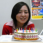5月28日で20歳になったばかりの石井さんのために,本人には内緒で花束とケーキが用意されていた