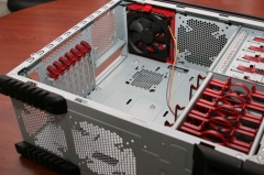 (右)ファンをケース底面や天板部など8か所に設置可能で,さまざまな冷却方法を選択できる柔軟性を持たせている