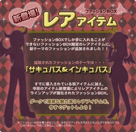 (2)ファッションBOXにレアアイテム追加 ファッションBOXにレア羽アイテムを追加しました。 (男女各1アイテム)