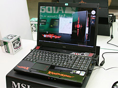 ディスプレイは15.4インチワイドの光沢タイプだが,外部出力としてデジタルYCbCr&RGB(HDMI)をサポートしており,高解像度テレビなどへ画面を出力することも可能だ。MSIはGX600を日本市場で発売する計画を持っており,さらに,日本法人の関係者によると,ベアボーンノートPC「MEGA BOOK」の1ラインナップとしての出荷を検討しているとのこと。現在はスペックなど細かな仕様を調整中という。登場となれば,ゲーム用ノートPCを自作できる時代がやってくるわけで,これは楽しみだ。