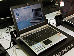 またMSIは,12インチのワイド液晶ディスプレイを採用したノートPC「PR200」と「PR210」も公開した。とくにゲーム用と謳われているわけではないが,併せて紹介しておきたい。 両製品は同一の筐体を採用しており,PR200は「Intel GM965 Express+ICH8」チップセットを採用した「Core 2 Duo」対応モデル,一方のPR210は「AMD M690T with ATI Radeon Xpress 1270」チップセットを採用した「Turion 64 X2」対応モデルとなる。 いずれも展示バージョンでは指紋認証機能を搭載するほか,HDMI出力も装備し,多機能で比較的コンパクトなノートPCといった印象。こちらもMSIは日本市場投入を検討しているという。