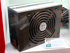 右:「ToughPower Qfan 500W」は,140mm角ファンの外枠部を薄くすることでノイズレベルを大幅に低減したという。同社は同テクノロジを採用した製品ラインナップも強化していく