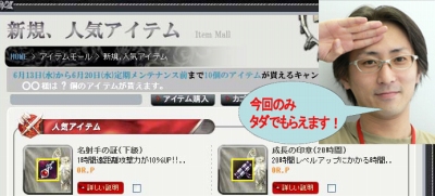 3.6月20日(水)アイテムモールが新規オープン致します。"快適なアイテム"と"快適な環境"をユーザーの皆様へお届けします。キャンペーン発案者であるイベント担当「清水」君が"自腹を切って"贈る 地上最強のスーパーゲームパソコンが当たる!「疾風怒濤の7日間!!」キャンペーン開催 (詳細は後日!)