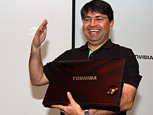 dynabook Satellite WXWを持つNVIDIAのRavi Kaushik氏(Marketing Manager, Mobile Products)。COMPUTEX TAIPEI 2007に合わせて開催された事前説明会では氏が説明を行った