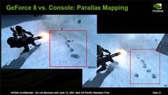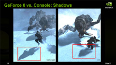 これらはオマケ的に示されたスライド。「ロスト プラネット エクストリーム コンディション」をGeForce 8シリーズとXbox 360でプレイすると,見栄えがこれだけ違う,とアピールしているわけである