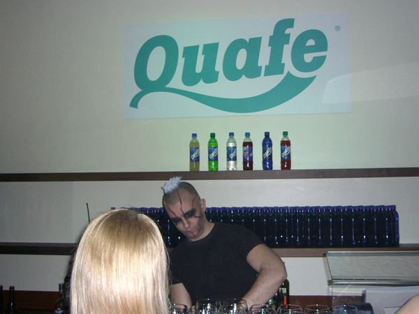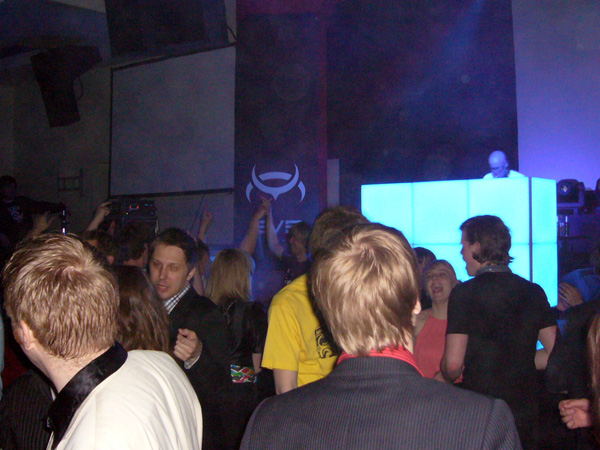 創立10周年のパーティは,レイキャビク市内にあるNASAというクラブで行われた。日本の会社が行うものとはかなり趣が異なり,大音量の中で,踊りまくり,飲みまくりといった感じのパーティだ。大きな声を出して隣の人と話をしなければならないので,けっこう疲れたが(そしてのどが渇く),偉い人の毒にも薬にもならない“お言葉”はなく,愛想笑いを浮かべる必要がなかったのは嬉しい。 会場では,EVE Onlineに登場するキャラクターのような格好をした人達が給仕をしており,ゲーム内で有名なドリンクQuafe(ウォッカベースのカクテルだった)が用意されていたり,EVE Onlineのムービーが常に流れていたりと,らしさあふれるパーティだった。11:00PMからは関係者以外でも招待状を持っていれば入場できるようになっており,会社の創立記念パーティに関係者以外の人が大勢いたというのも凄いが,3:00AMを過ぎてもCEO,CFOといった会社の重役が会場内を歩き回っていたことにも驚いた。