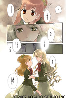 そのプレビュー版に当たる「ソルフェージュ 〜Overture〜」は,2007年5月11日のニュースでお伝えしたように,設定集の冊子と,ゲーム本編のタイニー版+各種アクセサリを収録した「Prelude Disc」,主題歌のマキシCDの計3点をセットにしたもの。設定集に収録された椋本夏夜さん作のコミック「序章」では,主人公「宮藤かぐら」と,その憧れの人「高屋すくね」の過去が描かれる。