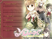 「Overture」に付属するミニゲーム「少女達の園」のタイトル画面と,主人公「かぐら」によるミュージックアクションパート,会話シーンにおける「すくね」と「ちほ」。ただし画面は開発中のもの