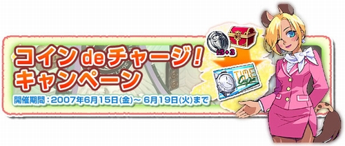 [URL] ■==============================■株式会社ジークレスト(本社:東京都渋谷区、代表取締役社長:長沢潔)は、無料で遊べるオンラインRPG『トリックスター+』に関して、2007年6月15日(金)より、「ガチャコイン15+3」を購入すると、有料アイテムの使用期限をチャージできる「チャージクーポン」がもらえる『コインdeチャージ!キャンペーン』を開始いたします。 ■イベントのご紹介 ○タイトル 『コインdeチャージ!キャンペーン』