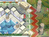 画面左:ラヘルのほぼ中央に位置している噴水。「ラヘル」の街並みはモロクに似ているが,モロクに比べるとラヘルのほうが全体に整備されている印象だ
