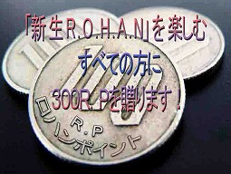 「総額1億円超!使ってみよう、300R.P タダでお試しキャンペーン!」実施!内容及び対象: 2007年6月13日(水)18時までに、「新生R.O.H.A.N」会員登録がお済みの方へもれなく、300R.Pを無料で支給します。