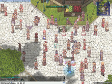 6月8日からオープンした練習用ワールドはプロンテラであったが,予選が行われたのは,より移動しやすいイズルード。通常のワールドであれば「にく」や「ミルク」などの回復アイテムが売られている街の中央だが,日本特設ワールド「RWC2007」では装備品,カード,回復アイテム,精錬,スキルリセットを担当するNPCがズラリと並んでいた。