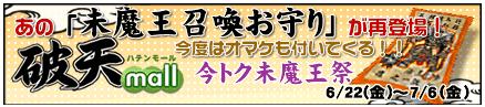 2007年5月に期間限定で登場した「未魔王召喚お守り」と「羊天上水」が遂に破天モールに再登場いたしました!この登場を記念して『今トク未魔王祭』を開催!今だけのチャンス!この機会に、ぜひお買い求めください!
