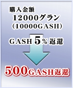 - 賞品:500グランの購入に使用したGASHポイントに対して5%のGASHポイントを返還