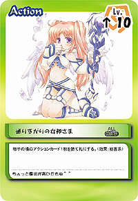 先日、『おのっぴ@GM』がGM職を引退し、シールオンラインTCGの会長として、『おのっぴ@会長』に就任いたしました。これを記念して、人気イラストレーター・みっき〜がイラストを担当した新作カード『通りすがりの女神さま』を配信いたします。
