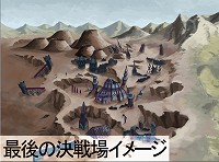 戦時に使われた兵器、馬車の残骸、戦の旗等が悲しく砂風にさらされている。