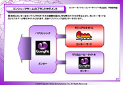 さて,もう一つの目玉である,コンシューマゲームタイトルについて。会場では説明に先立って,ガンホーゲームズのサイトなどでお馴染みの「Gung-ho News」の体裁で,ガンホーがニンテンドーDSタイトルに参入する旨を伝える動画が流された(森下氏はこの動画内にも出演している)。そして壇上の森下氏は,ゲームアーツからの技術継承を強調しつつ,コンシューマ事業の新展開について述べていった。ポイントは以下の2点である。
