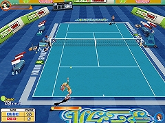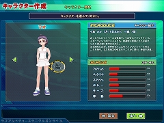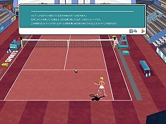 モード選択画面では,計五つのゲームモードが確認できたが,チェックアップテストでは,シングルス/ダブルスの試合を行う「誰でも対戦」と,特定のアクションをNPC相手に練習できる「特訓」の二つのみ。「トーナメント」「スターパニクル」「トップを目指せ!」の三つは未実装となっていた。 キャラクター作成後,NPC相手のチュートリアルなどは始まらず,いきなり「誰でも対戦」モードで試合に挑める。基本操作はA/S/Dキーおよびカーソルキーで行い,カーソルキーが移動,Aがトップスピン,Sがロブ,Dがバックスピンに割り当てられていた。また,それぞれの球種は,キーの長押しで威力が上昇するという仕様も存在し,テニスゲームとしては,なかなかプレイヤースキルを問われる作りといえるだろう。 だからこそ,ゲームをスタートした直後にチュートリアルがほしかった,というのが率直な感想だが,そのあたりは特訓モードで代用できなくもない。