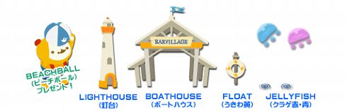 ○期間中、「ぷかぷかくらげパラダイス」に入っている以下のアイテムをゲットされた方に、夏の必須アイテム「BEACHBALL(ビーチボール)」をプレゼントいたします。