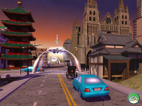 さて今回のバージョンだが,どうも,実際にはまだいろいろ手を入れている段階のようだ。建物には「昼だけ開いている」とか「週三日使える」とかいったパラメータもあるのだが,ミニゴルフ場が夜だけ開いているという設定を見た私は,やはりゴルフは日光の下で楽しむべきだと,まあ話のついでに感想を述べたところ,Electronic Arts側のプロデューサーであるDaniel Alioto氏は,うーん……と頭をひねり,その件についてメモを取っていたのである。