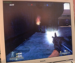 さて,本作は「OverMax SDK」と呼ばれる環境で開発されているのだが,その環境にAGEIAのPhysXテクノロジーを組み込み,対応させたという。また,PhysXテクノロジーの活躍如何とは別に,本作では物理エンジンを積極的にプレイ要素として使うことが考えられており,例えば上階からものを落とすといったアクションが,プレイテクニックとして使えるのだという。 実際に展示機で試したところ,弾が当たることでガラスは割れるし,建物の一部は崩れ,ドラム缶は炎上する。被弾しても壊れないような物体でも,被弾のエネルギーで後ろに倒れたり,はねとばされたりといった挙動が確認できた。 現段階では,必ずしも被弾したオブジェクトの物性にぴったりな処理が行われるとは限らない。しかしながら,被弾そのものを物理現象として再現し,ゆくゆくはプレイ要素として利用できるようにしたいという彼らの考え方は,先が楽しみである。
