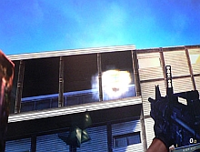 中央の画面と右の画面が,ビルの構造物を銃弾で壊す前と後。現時点では,壊れ方にやや不自然さが残る場合も