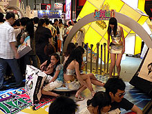 またモニターの前には,その作品のキャラクターに扮したコンパニオンさんが並び,カメラを構えた観客のリクエストに,ポーズをもって応えていた。