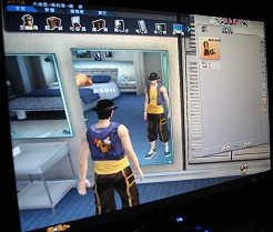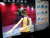 さて,本作で一つ気になった点がある。それはマイホームや街に存在しているの液晶モニターなのだが……最初,ミュージックに合わせたムービークリップやゲーム内の素材映像が流れていると思ったのだが,良く見ると何かの宣伝のように見える。詳細を聞いてみたところ,マイホームや街にある液晶モニター,さらに建物の壁など,あらゆる場所に映像広告を入れることができるという。実はこの広告,ただゲーム内広告として表示されているだけではなく,ゲーム内にこれらの広告を出している会社が,ゲーム内でアイテムショップを開いており,プレイヤーがそのショップでゲーム内アイテムを購入すると,現実の広告を出しているショップで商品が安く買えるというシステム(富メディアと呼ばれていた)があるという。これについては,今後まだまだ応用できる可能があるだろうと語っており,プレイヤーや出店企業,それぞれにメリットのある取り組みを目指したいとのことだ。