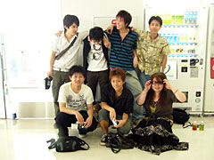 7月20日午前11時,東京国際空港(羽田空港)の国際線ターミナルに,RWC2007 日本代表ギルド「punch」の面々7名が勢揃いした。ゲーム内でそれなりに長い期間を共に過ごしてきた彼らの間でも,これが初顔合わせとなるメンバー同士もいる。 ソウル便のフライトは1:00PM。出国手続きまでの時間はごく短かったが,たとえ初顔合わせ同士の場合であっても,彼らは互いに既知のプレイヤーである。すぐに打ち解け,早くも共通の知り合い(これまたオンラインでの話だが)についてのうわさ話に興じ始める。そんな感じの彼らのノリを雄弁に語るのが,右上に示した写真だ。「僕らの団結でここまで来ました」と言って,少々照れながらも肩を組む姿は,なんというか微笑ましい。聞けば,7人中未成年が3人,ソウル行きは全員初めてで,そもそも海外に出るのはこれが初めてというメンバーも多かった。