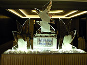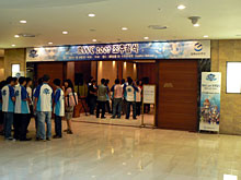 ご存じの人もあるいはいるかと思うが,ソウル付近の道路は迂回路に乏しいためもあって,夕刻の混雑が激しい。展示場とショッピングモールを兼ねて近年オープンしたSAMSUNG COEXを挟んで,バスの行き足は遅々たるものであり,会場に到着したのは5:30PM前後。フライトと同じくらいの時間,バスに揺られていた計算になる。ともあれ,日本代表ギルド「punch」は無事にレセプション会場に入り,Gravity側が用意した出場チームのユニフォームに,いささか慌ただしく着替えたあとに席に着く。