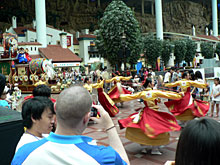 第一試合の開始予定時刻は10:45AM。それに先立って10:00AMから開会式が予定されていたため,日本代表ギルドは8:30AMには宿泊先であるHotel Lotte Worldのロビーに集合,メインステージ裏に用意された各ギルドの待機スペースに向けて移動を開始した。 もちろん各国ギルドも同様のタイムスケジュールで動いたものの,時差の大きい国から来たギルドのなかには,かなり早めに目が覚めてしまい,朝の6時からホテル周辺を散歩していたギルドもあったとか。 開会式が行われたのは,屋内スケート場である「アイスリンク」上にマットを敷き詰めて設営されたメインステージ。式そのものははごくあっさりとした内容で,まずRWC2007とは何かというごく簡単な説明に続いて,11か国の代表ギルドが順番にメインステージ上に登場。そして韓国の有名人による,Gravity Festival 2007およびRWC2007への応援ビデオレターが紹介されたあと,会場内に用意されたGravity運営作品のブースに詰めている,コンパニオンや着ぐるみがいっせいに壇上に上り,会場が華やいだところで終了だ。 なお,開会式に用意された席の最前列には,昨夜のレセプションに現れたLEVEL UP! INTERNATIONAL COOのBen Colayco氏をはじめ、各国でROを運営するパブリッシャが並び,そのなかにはガンホー・オンライン・エンターテイメント 代表取締役社長 森下一喜氏の姿もあった。