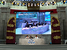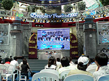 このあと,アイスリンクのメインステージでは表彰式が行われ,1位から3位までのギルドにはトロフィーと目録が授与された。またRWC2007だけでなく,Gravity Festival 2007の最後のステージとして,韓国のアーティストが登場しミニコンサートが行われた。2人組みのヒップホップ系アーティストは韓国では有名な歌手らしく,韓国代表ギルドは歌詞を一緒に口ずさんでいたし,会場周辺にはファンとおぼしき人が鈴なりになってステージを眺めていた。ただ,ラップ調の歌詞は当然ながらすべて韓国語なので,他国からの参加者には今ひとつピンとこない企画だったようだ。