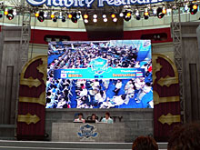 予選トーナメントとは異なり,この日はアイスリンクのメインステージ上で試合は行われた。決勝戦の前にはイベントの一貫として,一般入場者も参加可能なクイズ大会などもあった
