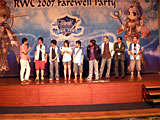 すべてのイベントが終了すると,RWC2007参加ギルドはHotel Lotte Worldへ移動し,そのまま「Farewell Party」に出席。会場には立食形式の食事が用意されており,全11か国のギルドメンバーは夕食を楽しみつつ,ときに微妙な英語でコミュニケーションを図ったり,Gravity側が用意したビンゴ大会に興じたり,記念写真を撮ったりと,楽しく過ごしたようであった。ちなみにpunchは台湾代表ギルドと仲良くなった様子で,台湾ギルドのメンバーから「台湾にぜひ来てください」「来年も(RWCが開催されたら)会いましょう」と,嬉しい言葉をかけられていたほか,ブラジル代表のメンバーともメールアドレスを交換していた。
