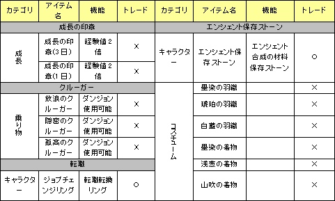 ご要望に応え、今回アイテムモールに、"日数"単位でじっくり遊べる「成長アイテム」が仲間入りしました! 皆様にお楽しみ頂く為の、価格的なお得さがご理解頂けたら幸いです。 快適さを求める冒険者の方は、是非ともお試し頂ければ? ※"+1個"おまけ付の「企画アイテム」も再登場いたしました。