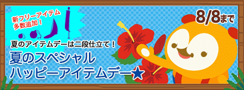 更に同日より夏の新フリーアイテムが登場する「夏のスペシャルハッピーアイテムデー」が開始いたしました。