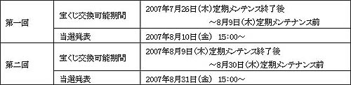 ヴァーチャルポイント「GEM」(ジェム)の他、プレイチケット、MUGACYAプレイチケット※の購入経験者が対象になります。 期間中にモンスターよりドロップする【天空の箱】から一定確率で登場するイベントアイテム【レナ】を収集。この【レナ】をNPC「黄金のアーチャー」に登録することで、公式サイト内の宝くじ専用ページにて、【レナ】10個につき1回、宝くじを引くことができます。 宝くじでは、アイテムレベル+9/フルセット/幸運付の装備・武器、祝福の宝石1920個など、豪華なゲーム内アイテムが当たります。 ※現在、プレイチケット、MUGACYAプレイチケットの販売はしておりませんが、『ミュー』のサービス提供形態が定額制だった時に、プレイチケット、MUGACYAプレイチケットを購入された方も対象になります。 「ドリーMUジャンボ宝くじイベント」開催概要 [URL]開催期間:2007年7月26日(木)定期メンテンス終了後〜8月30日(木)定期メンテナンス前 ※期間中2回実施します。