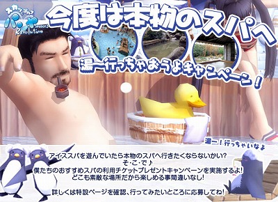 〜湯〜行っちゃおうよキャンペーン!〜 オンラインゲームの開発・運営を行う株式会社ゲームポット(東京都港区、代表取締役社長:植田修平、以下ゲームポット)は、Windows用オンラインゴルフゲーム『スカッとゴルフ パンヤ』の新コース「ICE SPA」の実装を記念して、プレゼント企画「本当のスパに行っちゃおう!」を開始します。