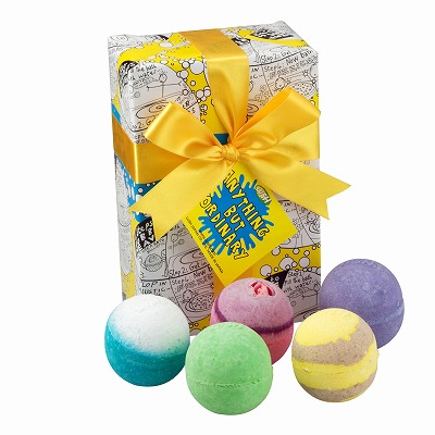 お風呂に入れるとシュワーッと溶けるバスボムが5個入ったギフトセット。今日はリフレッシュしたい気分?それともリラックスしたい気分?その日の気分に合わせて香りをセレクト。恋を占うおみくじが入った『恋の導火線』も入っています。毎日のバスタイムをレッツ・エンジョイ!
