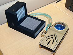 Leadtek Research製の水冷GeForce 8800 Ultraカード「WinFast PX8800 Ultra Leviathan」のデモも行われていた。ケース内に置かれることとなるラジエータ部が大きいため,それこそ「風神匠」などの大型CPUクーラーを利用できなくなるのはちょっと残念だ。「Hydra 8800」の単体販売は2007年9月ごろが予定されている