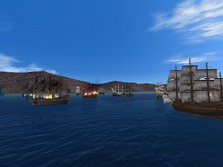 ■制海権を賭けた新たなる戦いバトルキャンペーン バトルキャンペーンは1 ヶ月のうちの7 日間、2 カ国間で特定海域の制海権(海域内に存在する街の影響度)を争う全く新しい形の海戦です。開催期間中は、24 時間いつでも世界中から専用の輸送艦に乗って、戦場の前線基地となる「作戦本部」に駆けつけることができます。 また、制海権を争う2 カ国のどちらにも所属していないプレイヤーは、傭兵としていずれかの陣営から参加することになります。 戦闘は、セッション形式で行なわれます。まずプレイヤー自身が「作戦立案」という形でセッションを作成し、敵・味方プレイヤーの参戦を募って戦闘を開始します。作戦立案時には、参戦可能な戦闘レベルや船のクラスを任意に設定することができますので、最大人数10vs10 の戦いを自由に楽しむことができます。 バトルキャンペーン専用の戦場は、海峡や群島、浅瀬といった様々な地形が用意されます。"バトルキャンペーン"に勝利すると、戦績に応じて該当海域に存在する街の影響度が上昇します。